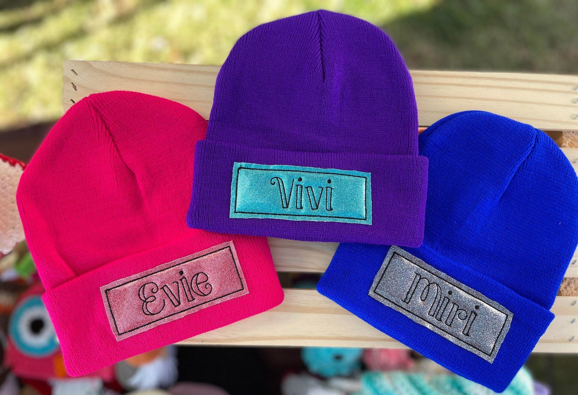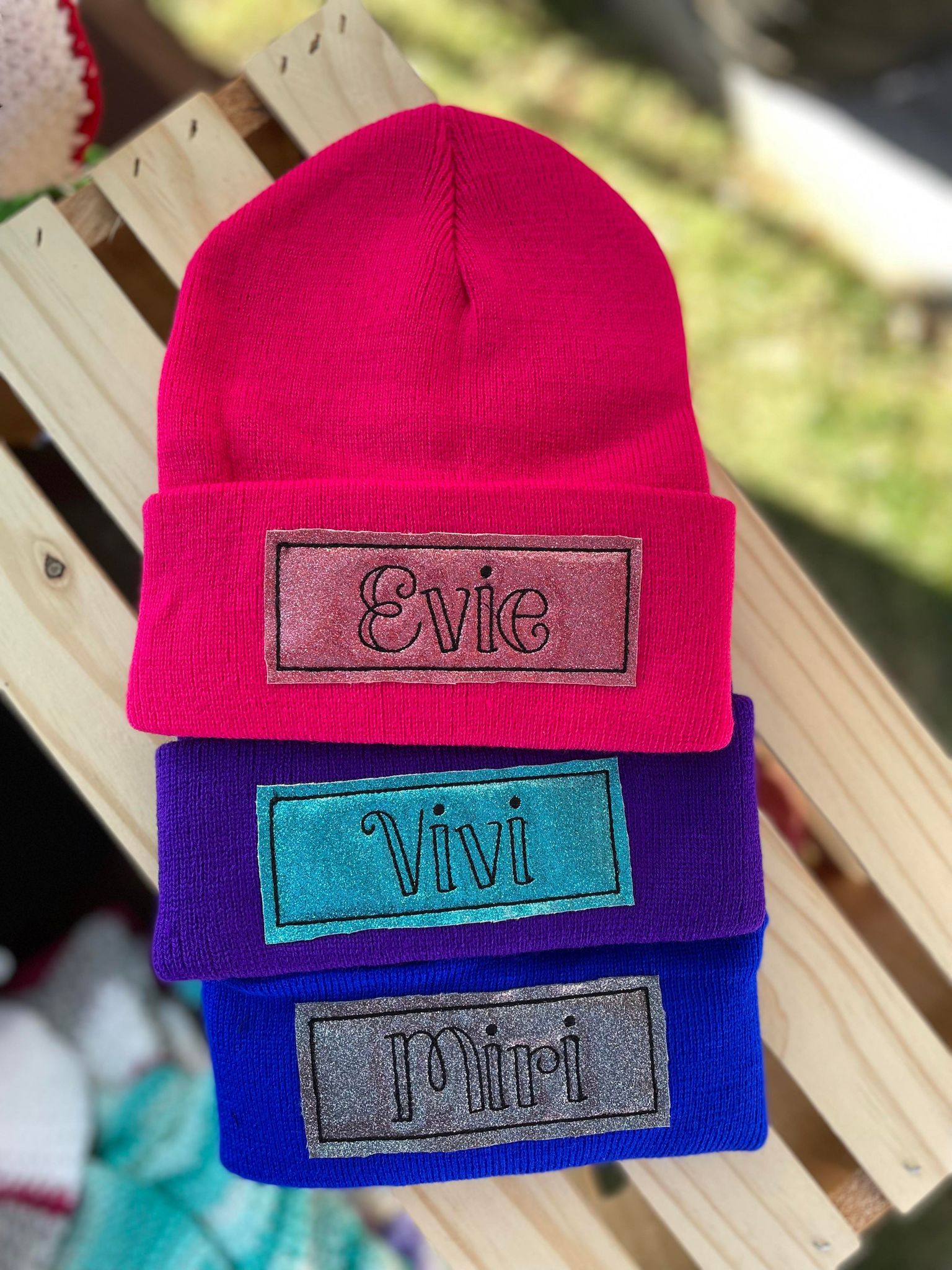 Name Patch Beanie - Glitter Color Patch - Custom Embroidery Accessory Gift